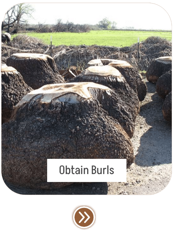 Producing burl veneer of higher end special selections, carefully chosen from genuine natural wood, to provide products certainly equivalent to the paid value.