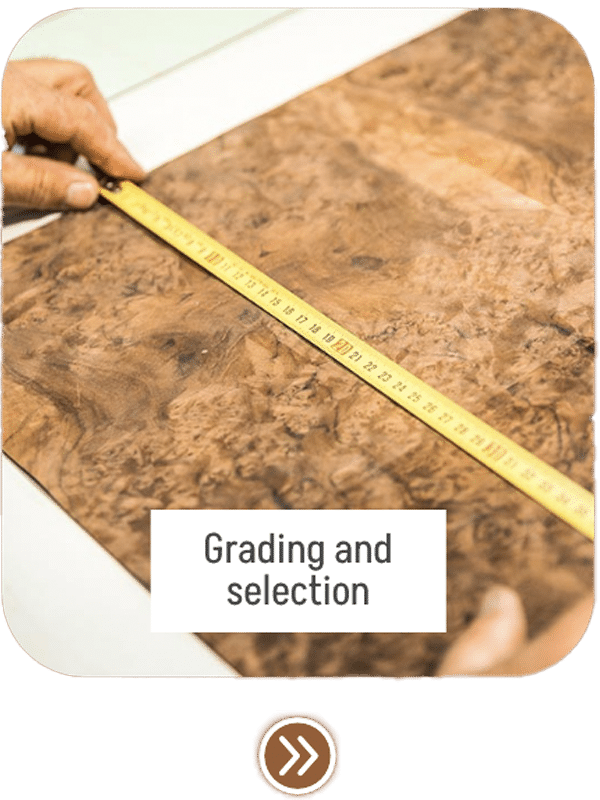Sustainability guides our work during all the steps of our producing process, providing sustainable veneers and burls. We particularly care about the selection of products certified FSC.